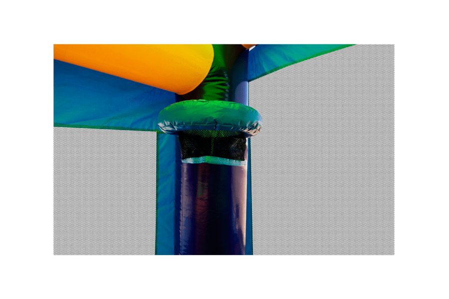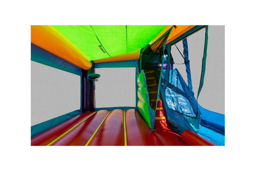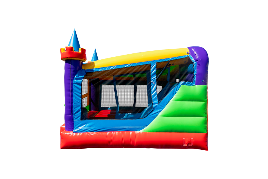 • 4-in-1 action: large jumping area, basketball hoop, climb, and slide.