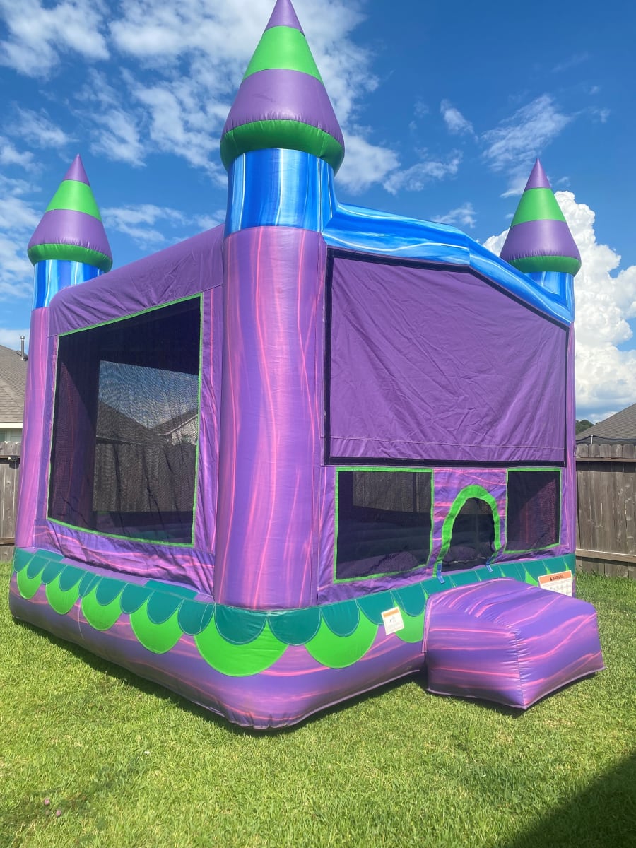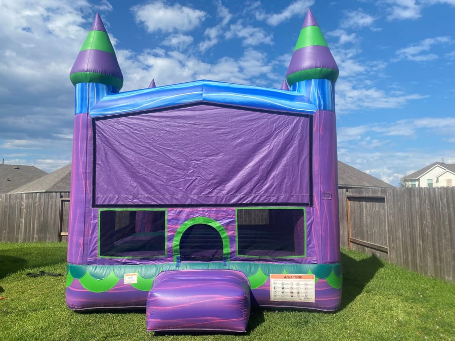 The Magical Mermaid Moonwalk is a mermaid fan's dream come true! With its enchanting purple and blue hues, it beautifully captures the essence of a mermaid's underwater grotto. Inside, the large jumping area offers hours of fun, and the basketball hoop adds an extra element of excitement to the bounce. This inflatable is perfect for any party or event, but it truly shines at mermaid-themed celebrations! Whether you're hosting a birthday party or a themed event, the Magical Mermaid Moonwalk is guaranteed to bring magic and fun to your gathering. And for an extra touch, don’t forget to add our Happy Birthday Silver Glitter Yard Cards to make your party sparkle even more!