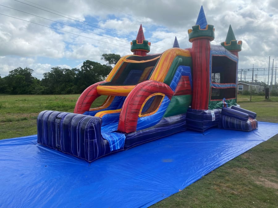 Make your event an unforgettable hit with the Grand Slam Combo Inflatable! This exciting rental is perfect for those looking to bring the WOW factor to their celebration. Featuring a spacious bouncer area, a basketball hoop for extra fun, and dual slides that can be used wet or dry, this combo offers endless hours of entertainment for guests of all ages!