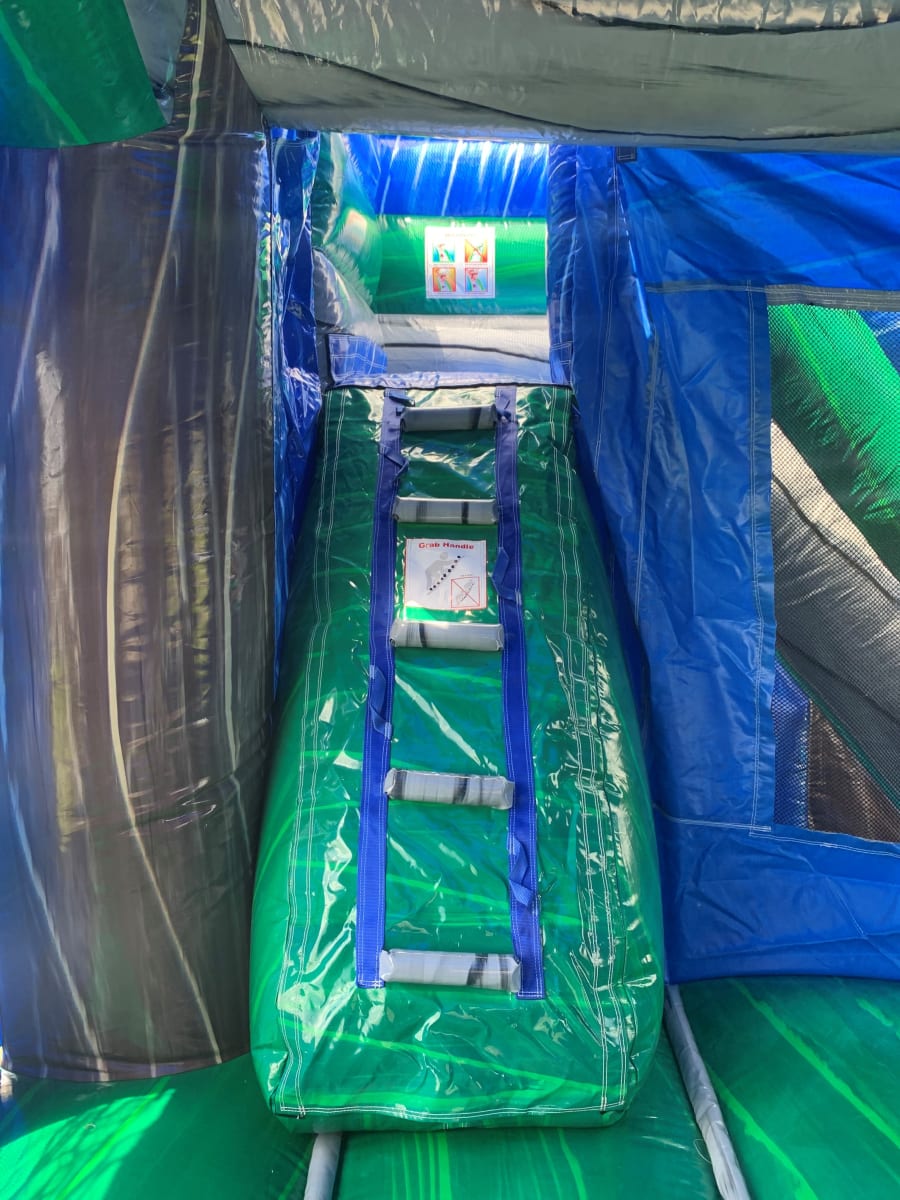 Looking for a little bit of everything? The 5 in 1 Blue Crush Combo has it all! Whether you're in the mood to play basketball, bounce in the spacious jumping area, or zoom down the slide, this inflatable has it covered. Plus, you can choose to use it wet or dry, making it a versatile option for any occasion, no matter the weather!