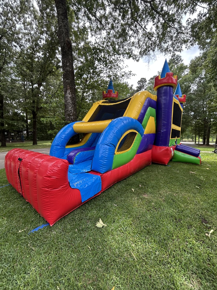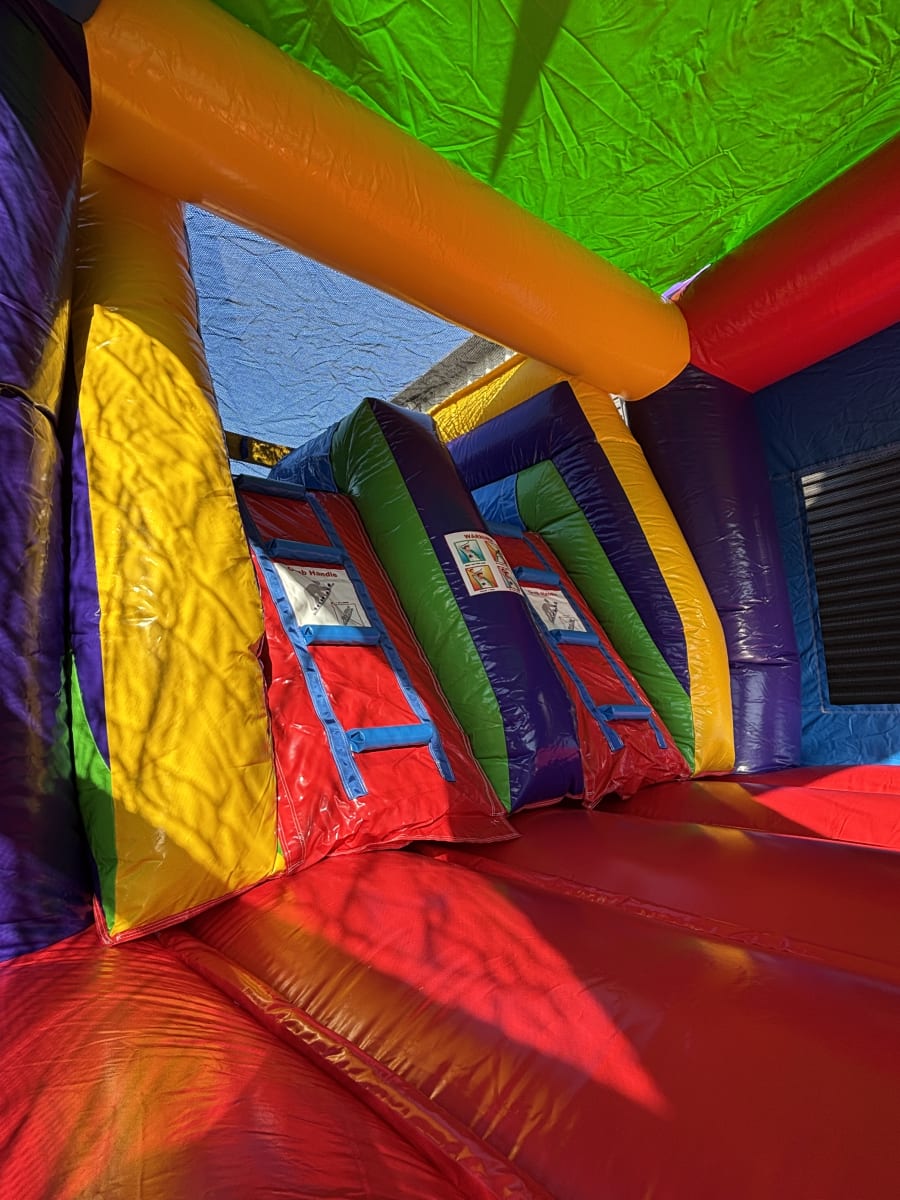 Get ready to turn up the fun with the Color Me Lucky Combo Inflatable! This exciting rental is designed to wow your guests and take your event to the next level. Featuring a spacious bouncer area, a basketball hoop for added excitement, and dual slides that can be used wet or dry, the Color Me Lucky Combo is a true crowd-pleaser. The slides come with both fast and slow lanes, leading to a thrilling end — either a splash-filled oversized pool or a dry bumper, depending on your preference!