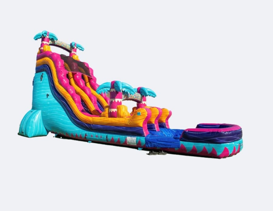 The 20-foot Rippling Rush Single Lane Slide by JC Magical Moonwalks offers an exciting adventure for all ages, whether wet or dry. This thrilling slide features a smooth, cascading design that creates a fun and fast-paced ride down its 20-foot height. With vibrant, eye-catching colors and a unique ripple pattern, it's sure to stand out at any event. Perfect for summer parties, festivals, or any outdoor gathering, the slide is versatile enough to be enjoyed both wet, for a refreshing splash, or dry for an action-packed slide experience. Easy to set up and safe for all, the Rippling Rush Single Lane Slide is the ultimate addition to any fun-filled occasion!
