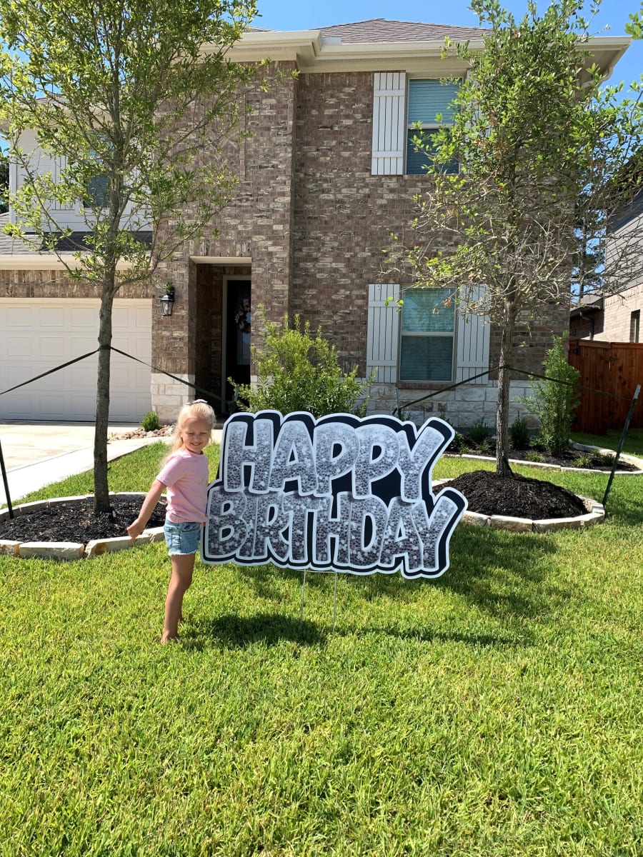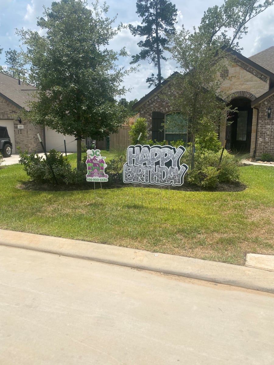 Installed with 10"x30" heavy duty coro H-Framed step yard stakes- Zinc plated for outdoor durability, 10" long prongs, base made of 3/16" round steel rod